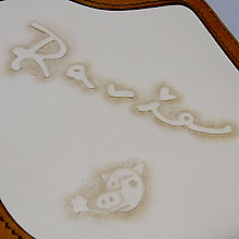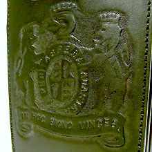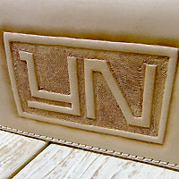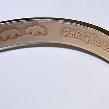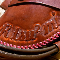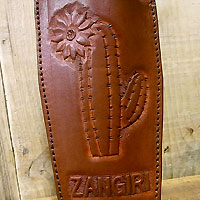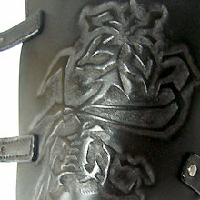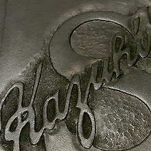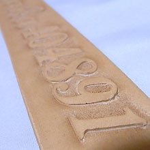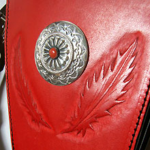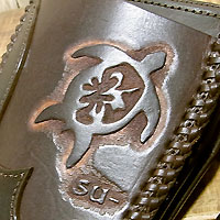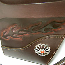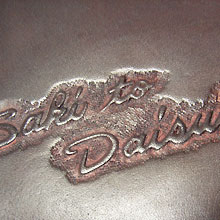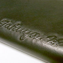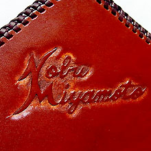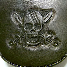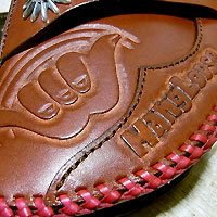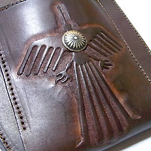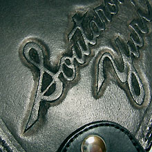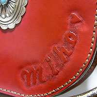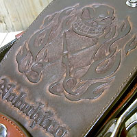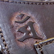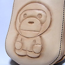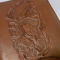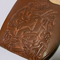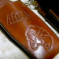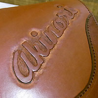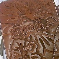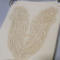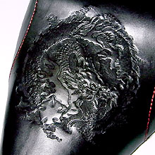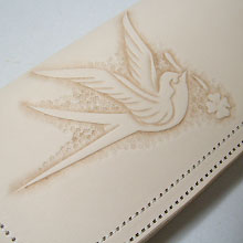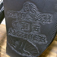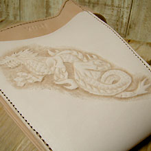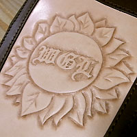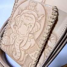 カービング(彫刻)は、図柄や文字を革に彫りこみ、それが立体的に浮き出てくるように見せる技法です。