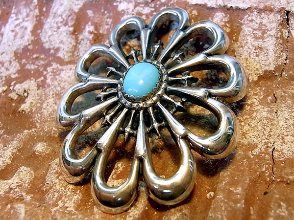 | 品番 C‐040 サイズ 45×56(mm) 価格 \23,500 (税込\25,850) トルコ石つき シルバー950 ※ターコイズ(トルコ石)は、天然のものが付属しておりますので、 色合い、模様など個体差がございます。 |