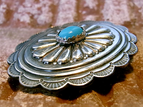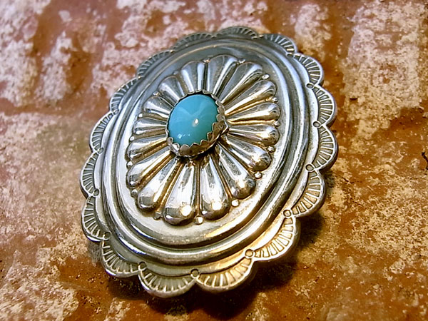 | 品番 C‐042 サイズ 30×37(mm) 価格 \7,000 (税込\7,700) トルコ石つき シルバー950 ※ターコイズ(トルコ石)は、天然のものが付属しておりますので、 色合い、模様など個体差がございます。 |