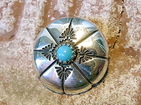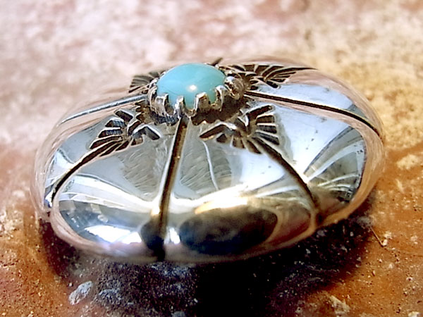 | 品番 C‐047 サイズ 21(mm) 価格 \5,000 (税込\5,500) トルコ石つき シルバー950 ※ターコイズ(トルコ石)は、天然のものが付属しておりますので、 色合い、模様など個体差がございます。 |
