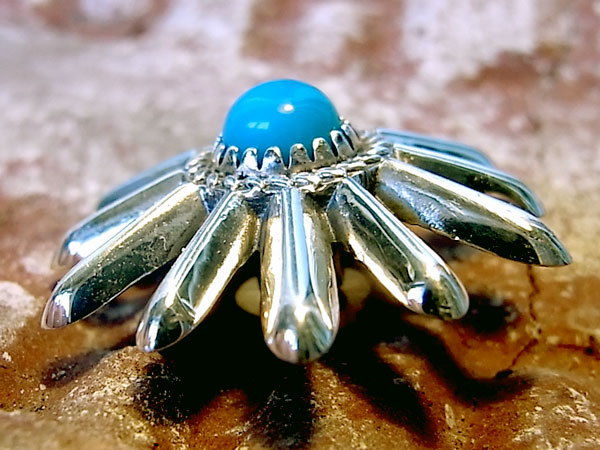 | 品番 C‐048 サイズ 27(mm) 価格 \5,000 (税込\5,500) トルコ石つき シルバー950 ※ターコイズ(トルコ石)は、天然のものが付属しておりますので、 色合い、模様など個体差がございます。 |