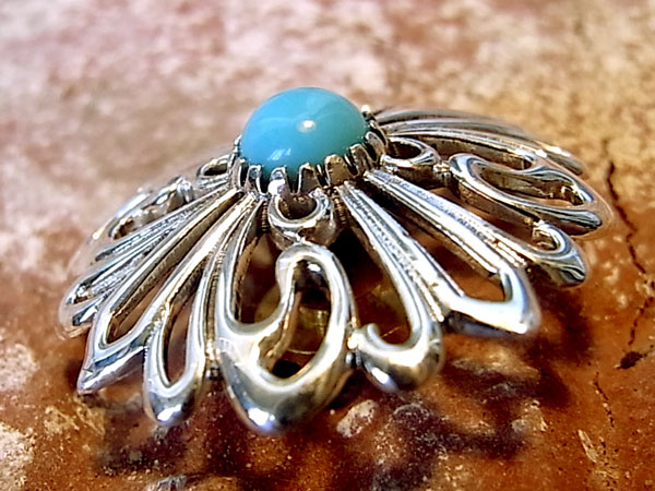 | 品番 C‐067 サイズ 23(mm) 価格 \4,400 (税込\4,840) トルコ石つき シルバー950 ※ターコイズ(トルコ石)は、天然のものが付属しておりますので、 色合い、模様など個体差がございます。 |