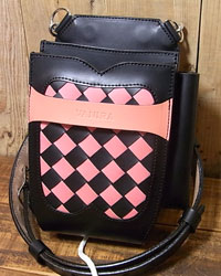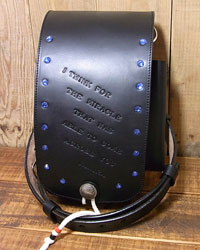 オーダー706-022 革種:スタンダードレザー 革色:【BK】ブラック 【P】ピンク 仕様:シザー4丁差し カバー751付属 右サイドにフェイスブラシホルダー 装飾:カバーにブルーのスワロスタッズ ベース:706