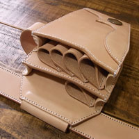 オーダー705-099 革種:ウォッシュドレザー 革色:【W-SD】ナチュラル 仕様:左利き用シザー5丁差し 右サイドにフェイスブラシホルダー ベース:705