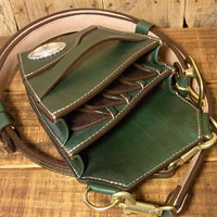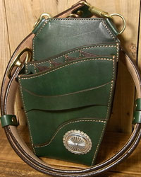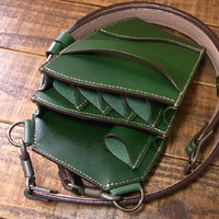 オーダー705-097 革種:カービング用レザー 革色:【C-G】グリーン 仕様:シザー4丁差し 装飾: コンチョC-065に変更 ベース:705