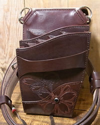 オーダー702-039 革種:カービング用レザー 革色:【C-CB】チョコブラウン 仕様:シザー4丁差し 装飾: カービング パンチング ベース:702