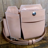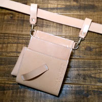オーダー703-015 革種:スタンダードレザー 革色:【SD】ナチュラル 仕様:横幅サイズアップ シザー6丁差し 右サイドにフェイスブラシホルダー ベルト固定ウエスト用