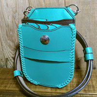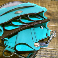 オーダー702-043 革種:スタンダードレザー 革色:【TQ】ターコイズ 【CB】チョコブラウン 仕様:シザーホルダー後部1丁のみ着脱式 シザー5丁差し ダブルステッチ