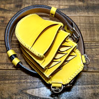 オーダー704-076 革種:スタンダードレザー 革色:【Y】イエロー 仕様:ポケット追加 装飾:両サイド、前後ダブルステッチ