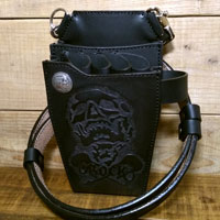 オーダー708-061 革種:カービング用レザー 革色:【BK】ブラック 装飾:スカルカービング コンチョC-056