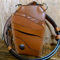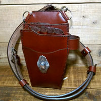 オーダー708-062 革種:カービング用レザー 革色:【C-RB】レッドブラウン 仕様:カバー751付属 シザー6丁差し 装飾:コンチョC-035