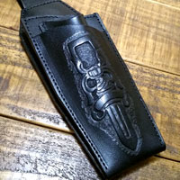 オーダー692 革種:カービング用レザー 革色:【BK】ブラック 仕様:シザー1丁差し ベルトループタイプ 装飾:短剣カービング