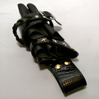 オーダー694 革種:エナメルクロコ 革色:ブラック 革種:スタンダードレザー 革色:【BK】ブラック 仕様:シザー5丁差し ベルトループタイプ 装飾:星型スタッズ×4