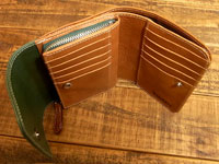 オーダー665 革種:ダコタレザー 革色:グリーン、ブラウン 仕様:三つ折りタイプ