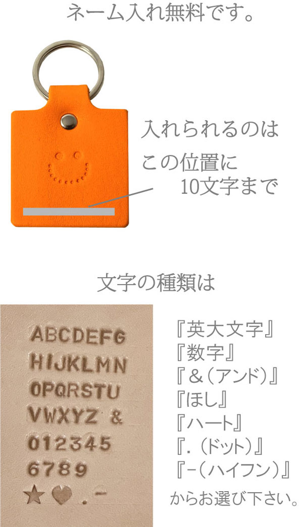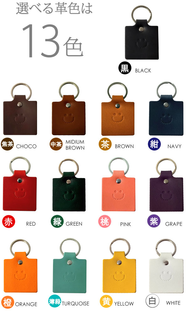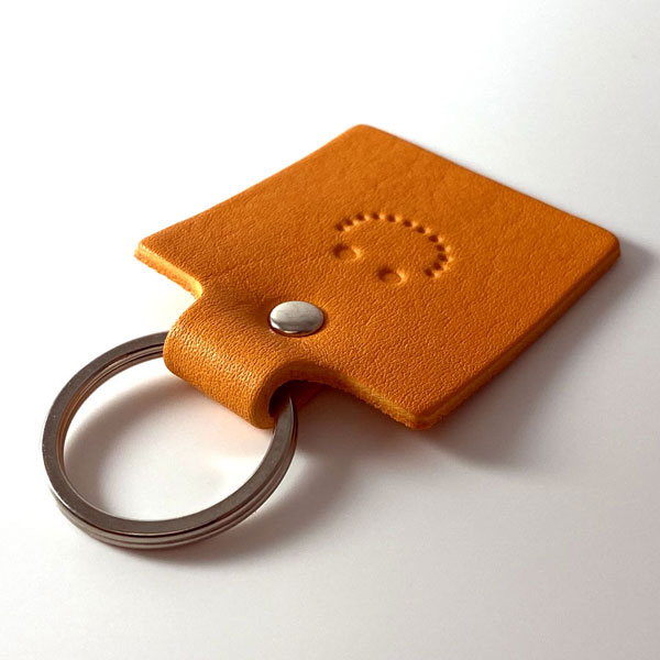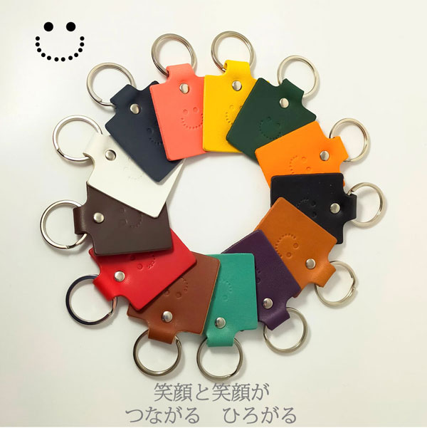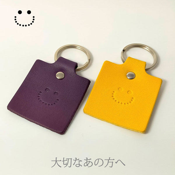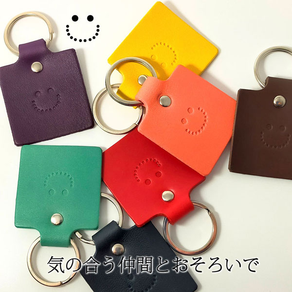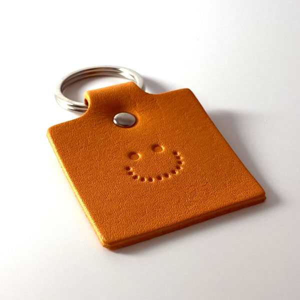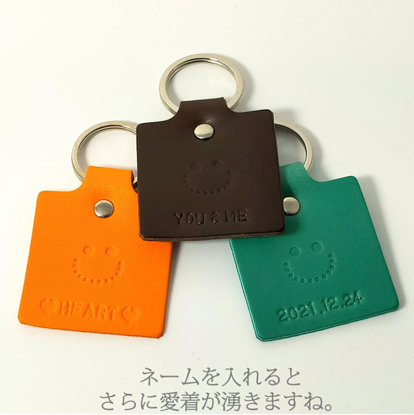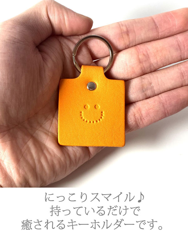 にっこりスマイル♪ 持っているだけで癒される キーホルダーです。 大切な皆とおそろいで ネームや記念日等、刻みますので プレゼントに最適です。 お好みの革色につづりをご゜指定下さい。 ベジタブルタンニンレザー使用なので、 使うほどに味わい深くなっていきます。 永く使って頂くためのものだから、素材を厳選し、 ひとつひとつの工程にじっくり、丁寧に取り組んでいます。 数年後の味わいが楽しみな手作り革小物を 是非ご自身でお確かめ下さい。