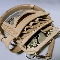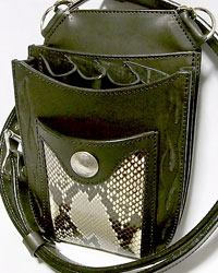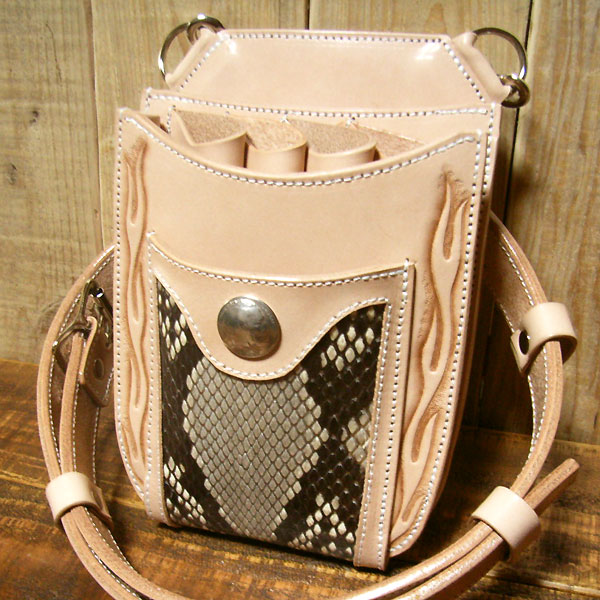 ダイヤモンドパイソンのインレイとフレイムスのカービング入りシザーケース。