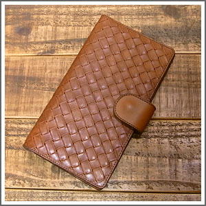 メッシュの型押し牛革とオイルレザーのコンビネーション。
