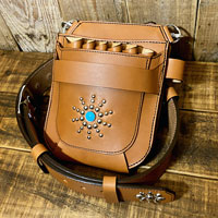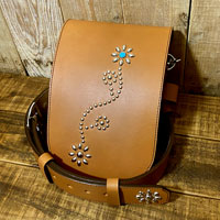 オーダー702-045 革種:スタンダードレザー 革色:【B】ブラウン 仕様:シザー6丁差し カバー付属 ベルト幅サイズアップ スタッズワーク